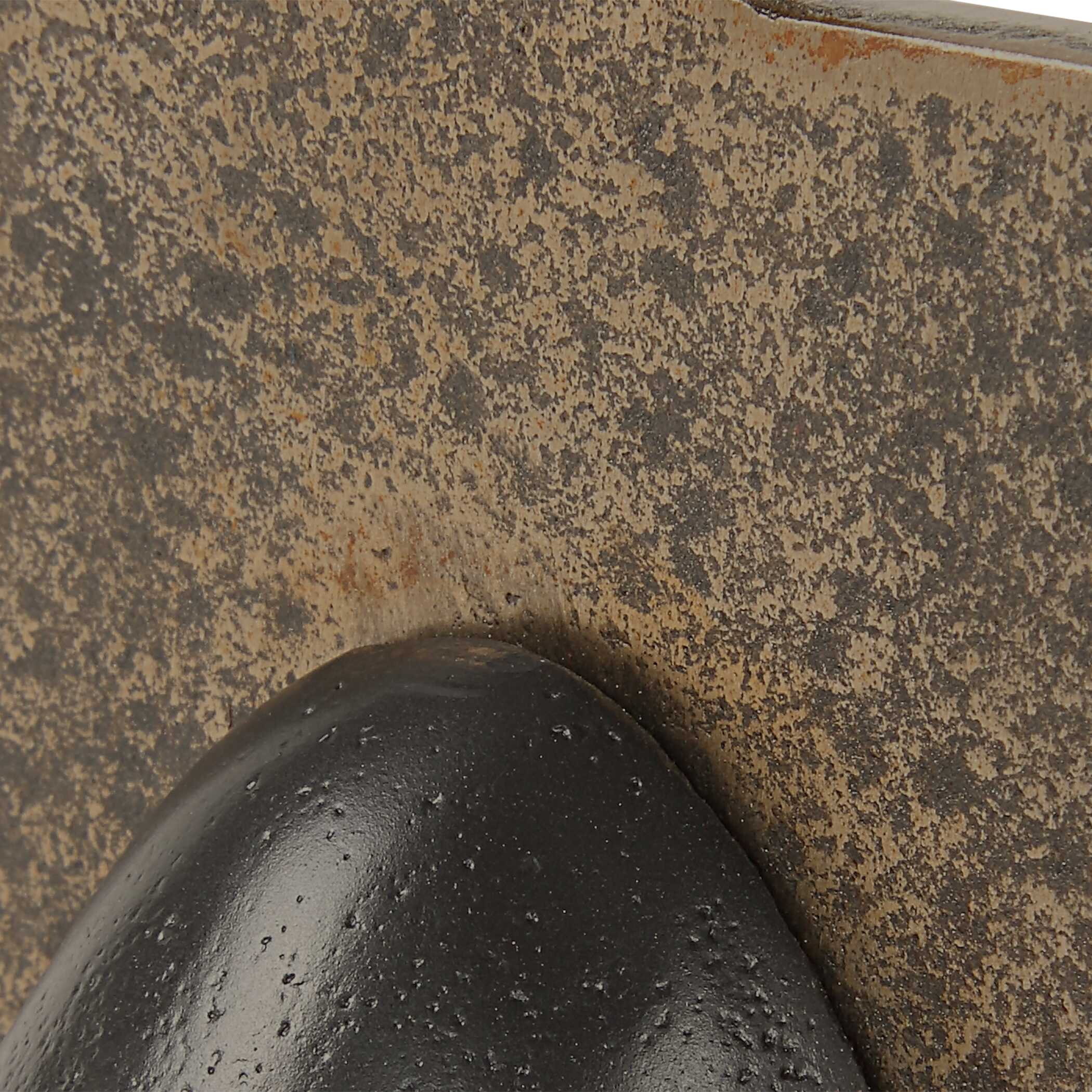 アイアンの質感とフィニッシュを末永く美しく保つため、普段のお手入れは柔らかい乾いた布で優しく埃を払う程度にしてください。表面の風合いを損なう恐れがあるため、研磨剤入りのクリーナーや化学洗剤、水気のある布の使用は避けてください。鉄製品の特性上、多湿な場所での長期間の使用は錆の原因となる可能性があるため、屋内でのご使用を推奨いたします。